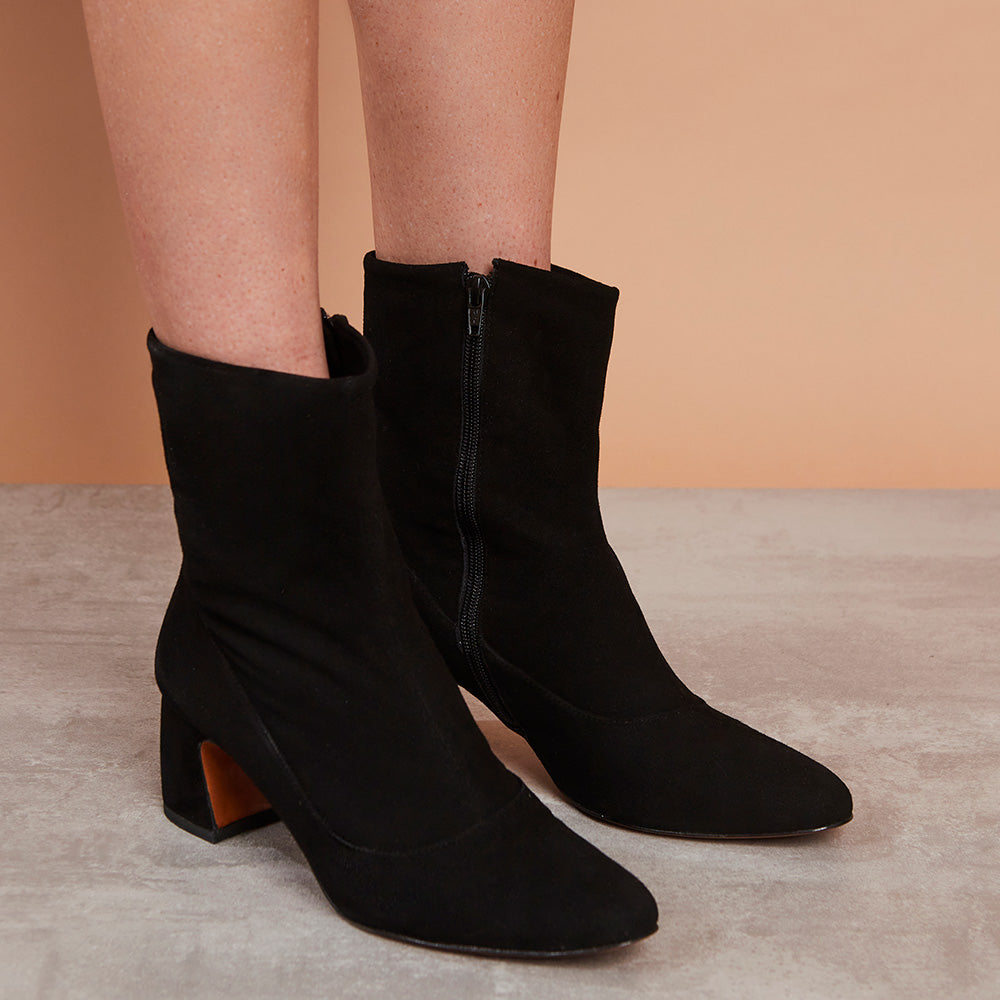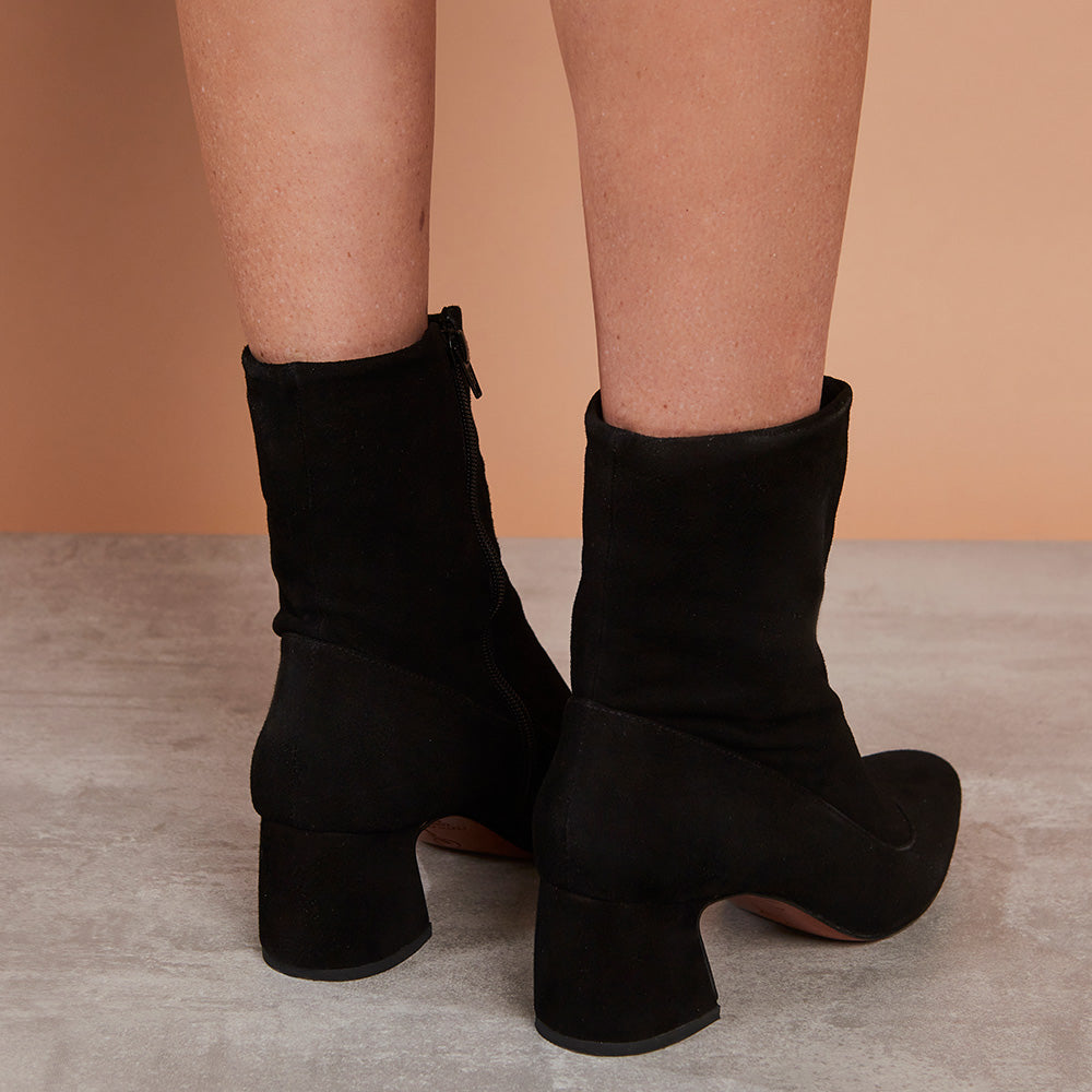 Elegância funcional para os dias mais frios. Confeccionada em camurça premium, a Bota Slim combina design minimalista, perfeita para compor looks sofisticados. O salto bloco proporciona um caminhar estável e confortável, enquanto o cano médio se ajusta suavemente às pernas, garantindo praticidade e um visual moderno. Use-a com vestidos de malha, trench coats ou calças cropped para criar produções effortlessly chic.