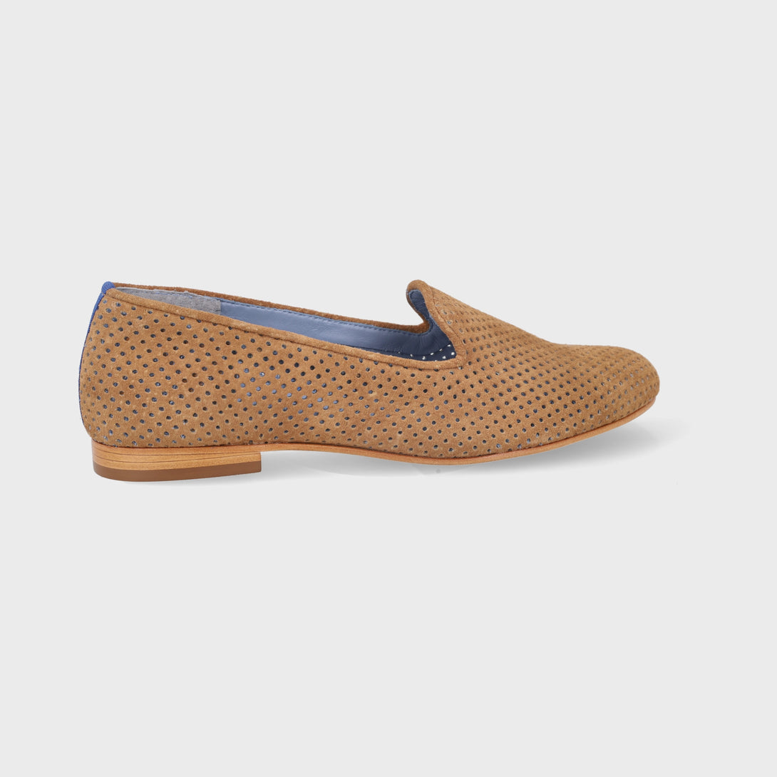 O clássico que se renova a cada temporada. Em camurça camel com acabamento perfurado, o Loafer Saudade une leveza e conforto em seu formato mais atemporal. O charme especial fica por conta da palmilha ultra macia e do detalhe em azul Klein, assinatura da Bird & Co.