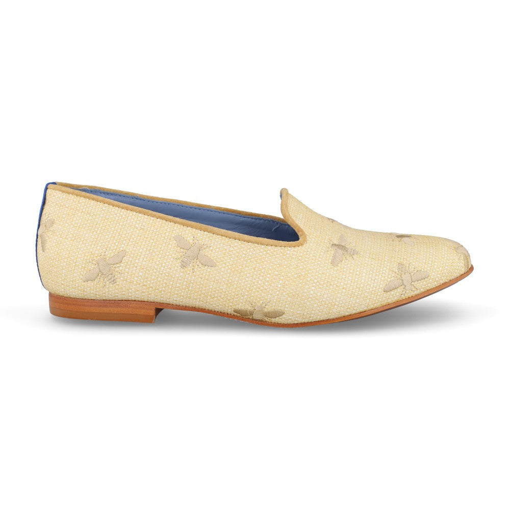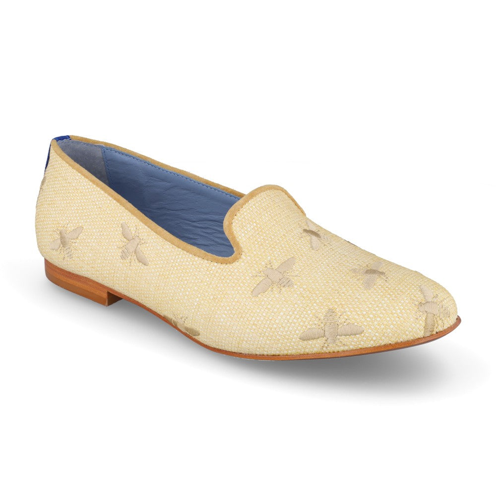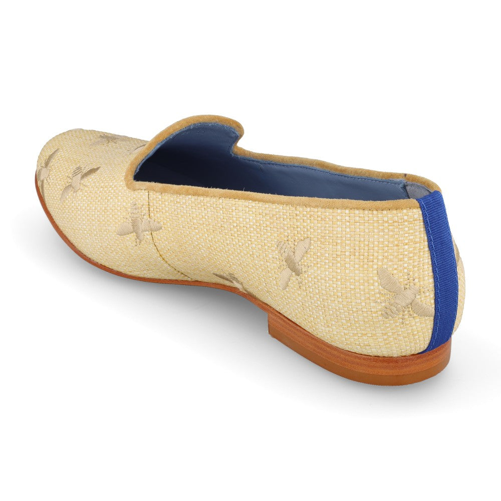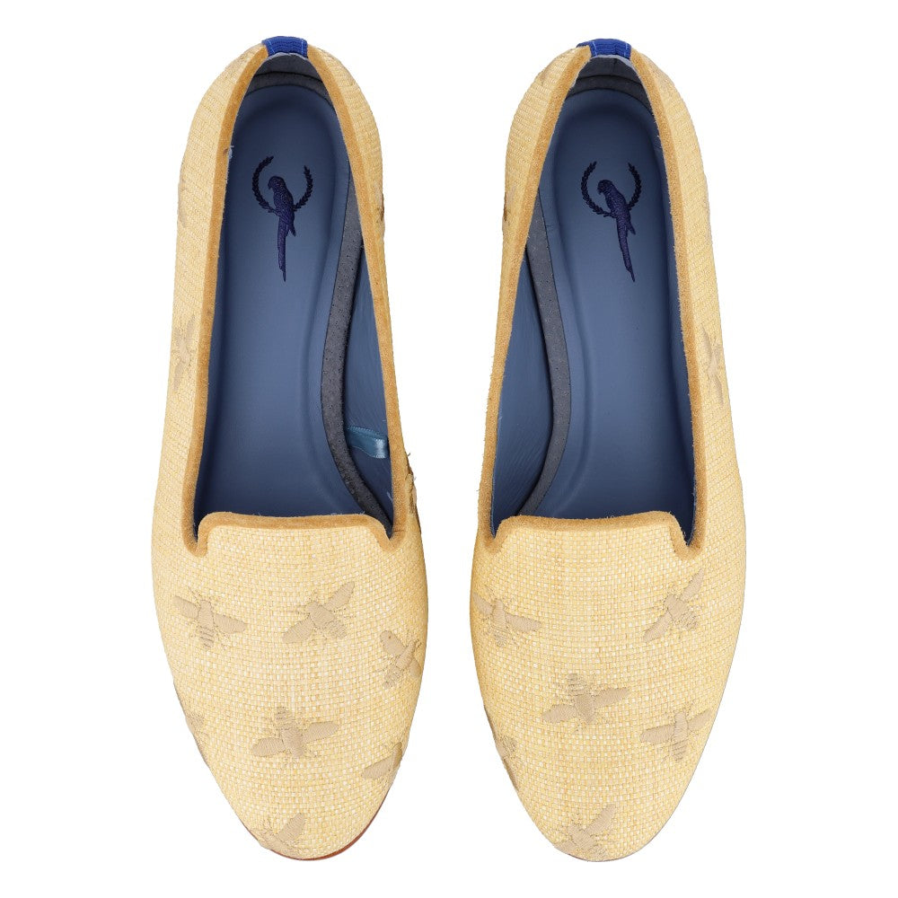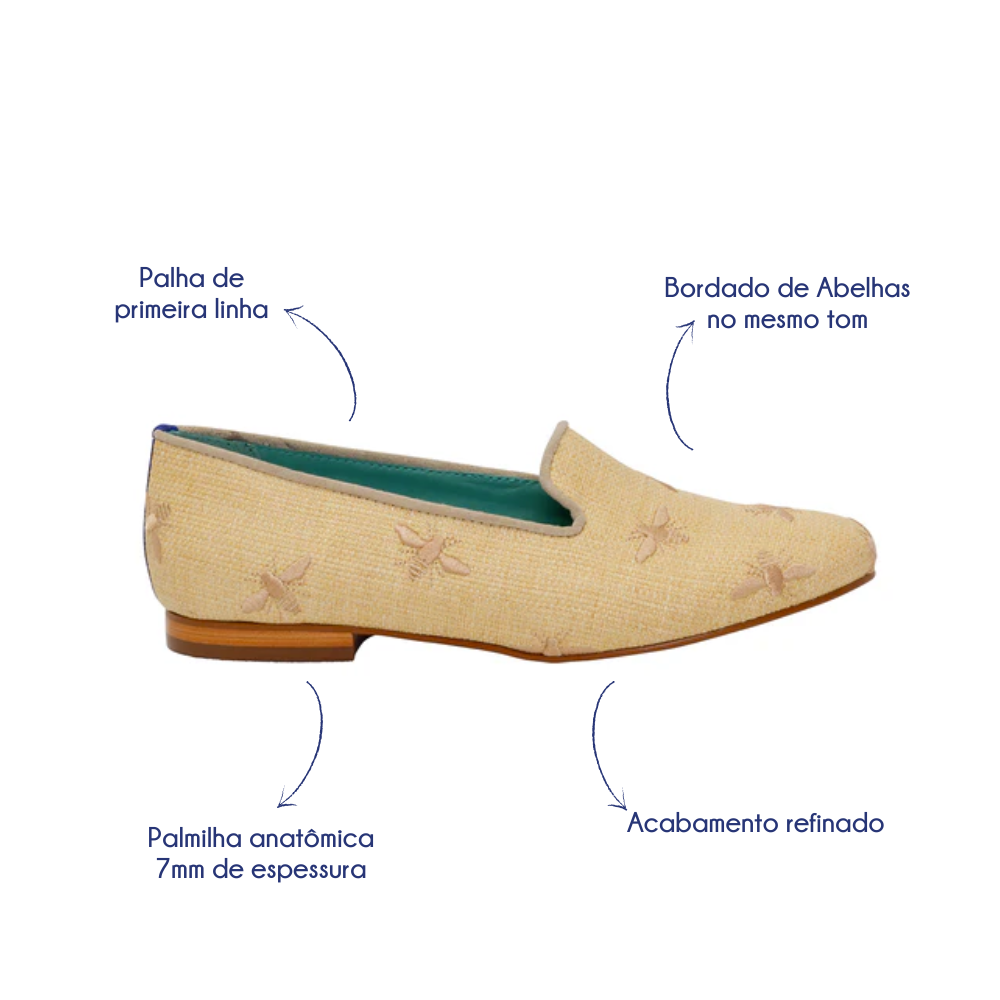 Modelo confeccionado em palha de primeira linha, com bordado de abelhas na cor ouro, palmilha comfort anatômica com 7 mm de espuma, cor verde acqua, exclusiva BLUE BIRD