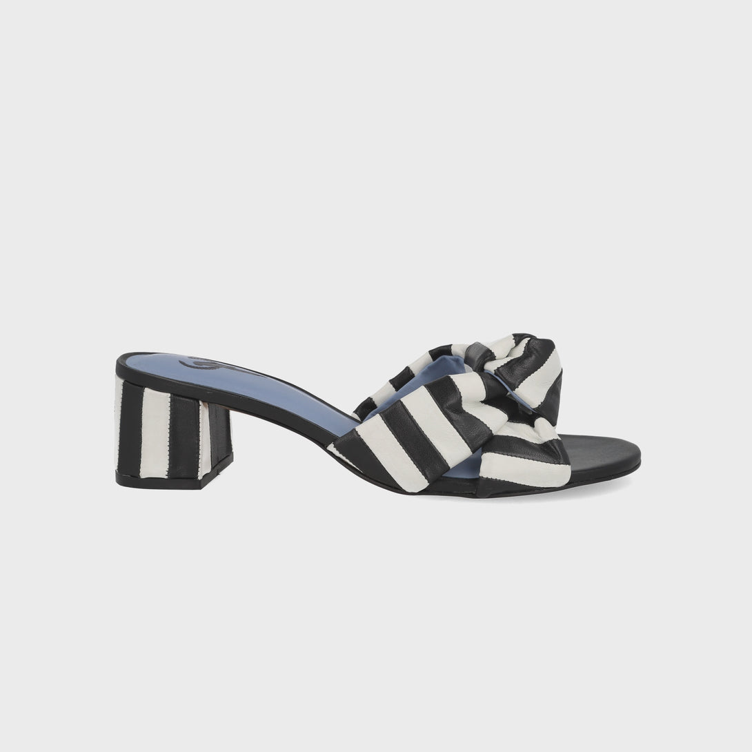 Ousada e estilosa, a mule listrada em preto e branco traz um visual impactante, ideal para quem deseja se destacar. O laço volumoso nas tiras cria uma silhueta divertida, enquanto o salto médio oferece estabilidade. A palmilha de 7mm de espuma garante conforto, e o azul da palmilha destaca a identidade da Blue Bird, conhecida por seu conforto e exclusividade.