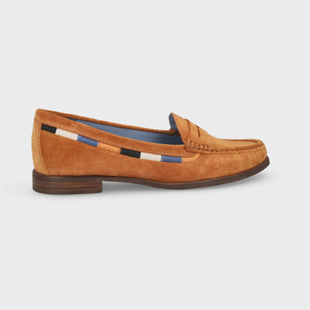 Um clássico com toque artesanal. O Penny Loafer Tribal em camurça indian tan combina o design atemporal do penny loafer com detalhes tribais bordados que trazem personalidade ao modelo. Confortável para o dia todo, conta com palmilha macia da Bird & Co.