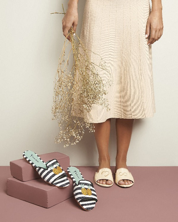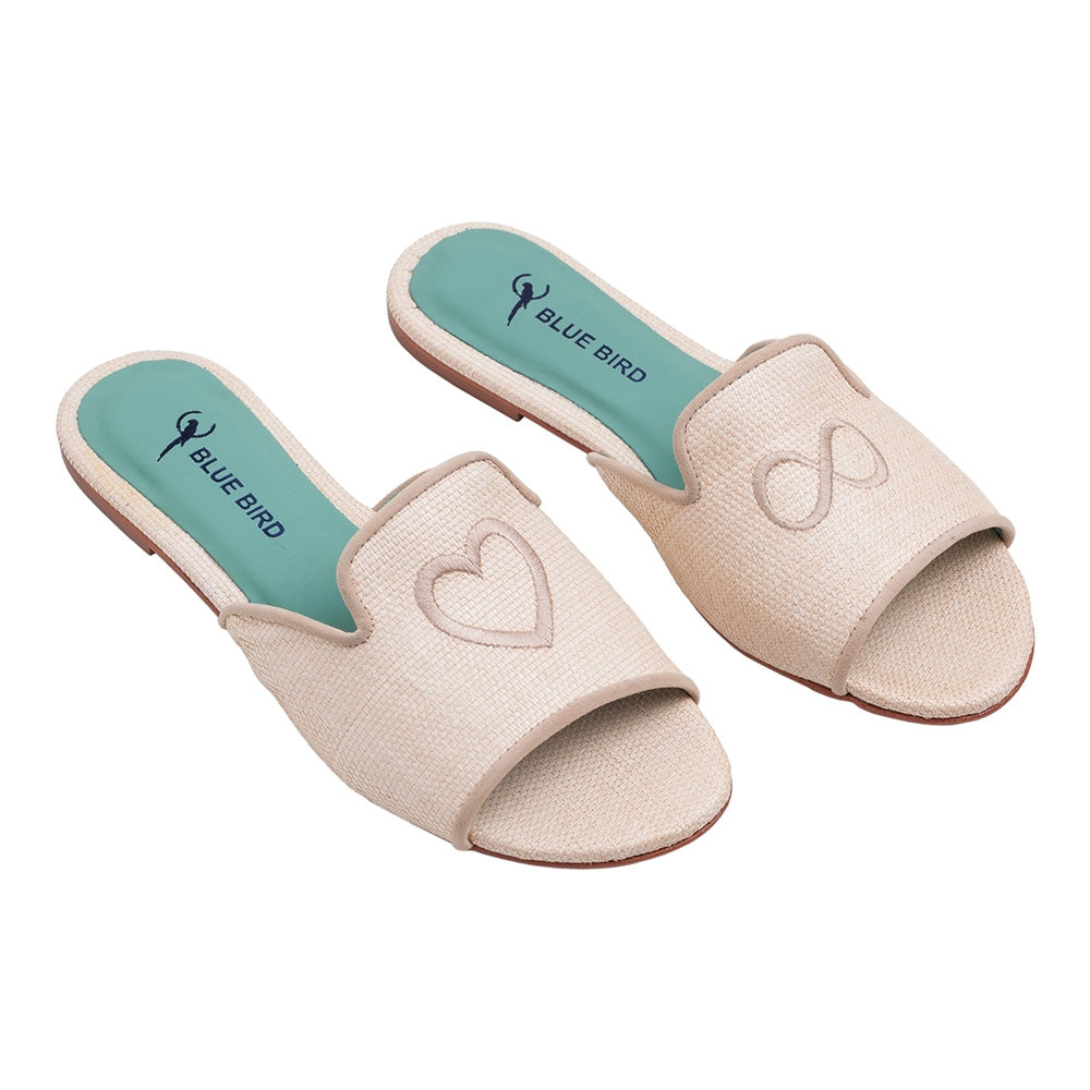 Rasteira Shower Flat Palha Amor Infinito Nude