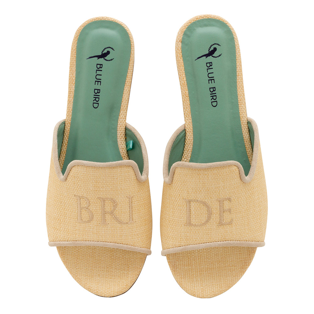 Modelo confeccionado em palha de primeira linha, com bordado bride [NOIVA], palmilha comfort anatômica com 7 mm de espuma, cor verde acqua, exclusiva BLUE BIRD.