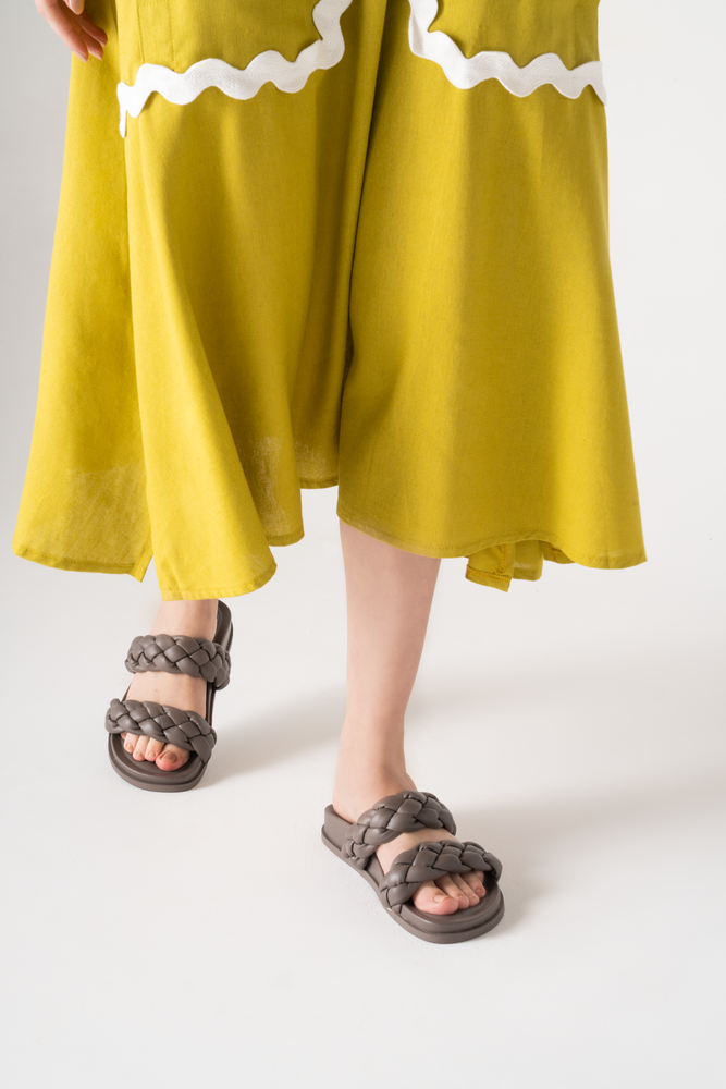 Cabedal: Duas tiras trançadas em material acolchoado Altura salto: 0,53 cm